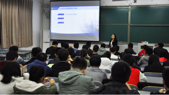 什么是时间管理?用最短的时间或在预定的时间内,把事情做好便是时间管理。易老师强调大学里没有来自父母、老师的提醒和督促,同学们一定要学会自我管理、自我约束,要有自律性。她从确定目标、列出清单、排列次序、安排时间、有效执行、及时反馈六个方面告诉同学们如何做好时间管理。在确定目标时,她强调同学们要考虑自己的兴趣、价值、能力以及个性,明确得失处境,立足自己所处的阶段,实事求是;同时,她认为及时反馈也至关重要,同学们要学会在反馈中完善对时间的管理。易老师还给同学们介绍了“人体生物钟”、“时间箱”、“时间管理四象限法则”的管理时间的小方法,并在学会授权,当日事当日毕等14个时间管理的注意事项上提醒同学要做好时间管理。