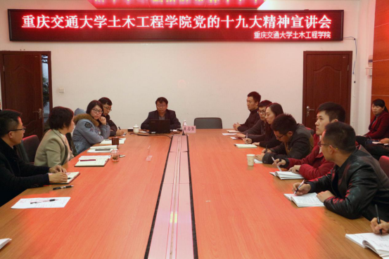 11月23日下午,我校副校长易志坚教授为土木工程学院全院所有党支部书记、辅导员带来了一场精彩的十九大精神宣讲会。易校长从自身的经历出发,分享了一个亲历者、见证者的喜悦自豪之情,让大家身临其境地感受到了十九大的盛况,也把党对高校师生寄予的厚望传递给了在场的每一位师生。