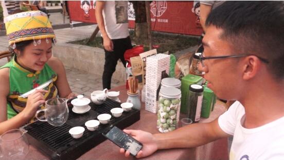每年农历七月十二日为土家人的传统节日“女儿会”。在很久以前,有薛姓人来到此处定居,薛家教女甚严,与当地人民在劳动中唱歌跳舞,吐露爱情的生活习惯相去甚远。机缘巧合下,薛乡士在一次筵席上酒肉酣畅,兴尽之余,将女儿唤至身边,准许姐妹九人月半节那天与当地人一齐游玩。到她们出门那天,寨里的小伙纷纷山歌相随,眉目传情,气氛热闹非凡。此后,每年的七月十二日,姐妹们都会偷偷与邻里相邀出行,盛装打扮,对唱山歌,风俗沿袭至今。在与现场工作人员的攀谈过程中,团队了解到有一首名曰《六口茶》的特色土家族山歌仍广为流传,在工作人员的指导下,队长王思宇与工作人员对唱了起来,其他成员也跟着学习,不多时,团队纷纷哼唱《六口茶》,在互相对唱中体会土家族人民的开放与热情。