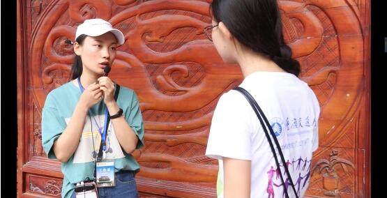 在记录了一系列土家族民俗风情之后,团队队员陈雨欣对工作人员进行了采访,在采访中,团队对土家族哭嫁与陪七姊妹等习俗及其变迁都有了一定的了解和认识,当谈到土家族特色手工艺西兰卡普的保存与传承现状时,工作人员表示:“西兰卡普是最具土家族特色的手工艺织品之一,所以政府也高度重视它的发展传承。现在当地部分中小学都会定时组织学生前往学习西兰卡普。”听到此处,团队成员也纷纷表示不虚此行,以后有机会一定再来好好体会一把学习西兰卡普的乐趣。