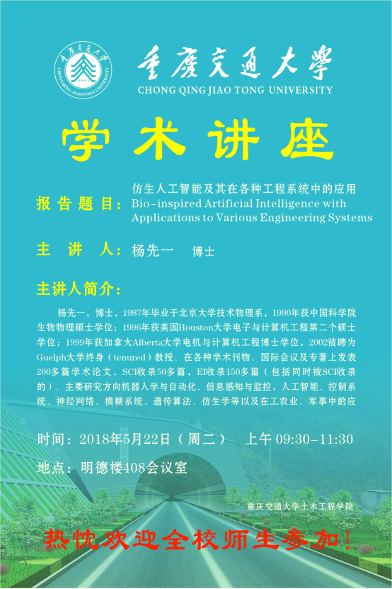 土木工程学院学术报告海报:仿生人工智能及其在各种工程系统中的应用